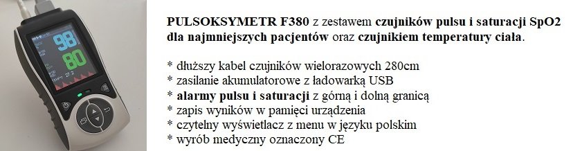 Zamów Pulsoksymetr dla niemowląt i dzieci F380, wpisz w komentarzu kod 'kabel280′. Otrzymasz czujnik opaska rozłączna na stopę dla najmniejszych pacjentów z dłuższym kablem 280cm.
